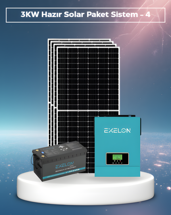 Bu ürün SB Solar tarafından oluşturulmuş hazır solar paket sistemidir. Paket içerisinde farklı markalara ait inverter, batarya ve ekipmanlar yer almaktadır.