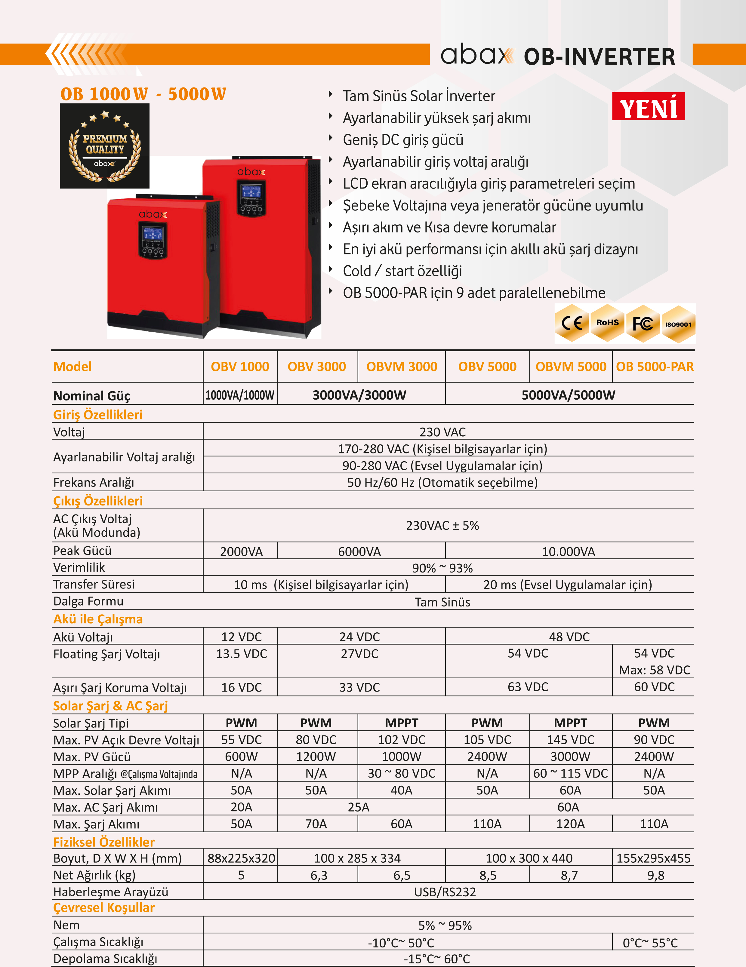 ABAX OBVM-5000 Tam Sinüs MPPT Akıllı İnvertör 48V – 5000W