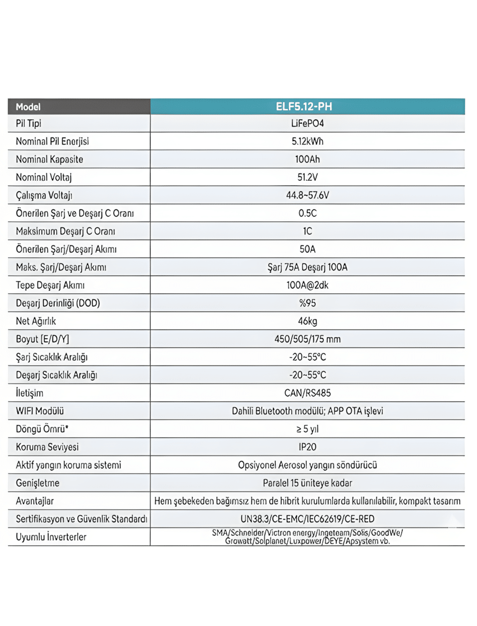 | Batarya Tipi | LiFePO4 |