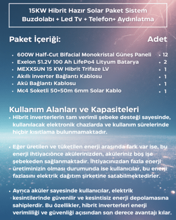 SKU: 136815KW Hibrit Solar Paket Trifaze | 600W Panel + 51.2V 100Ah Lityum