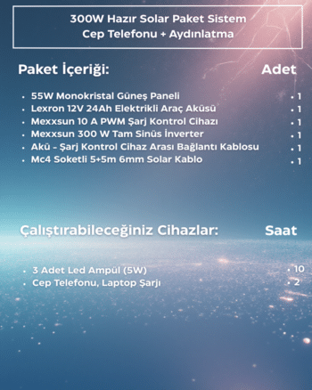 SKU: 779300W Hazır Solar Paket Sistem | Telefon Şarj & Aydınlatma Seti