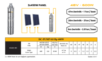 540W 3Adet Güneş Paneli+Dc Pompa 1.6Hp 110V Tak Çalıştır
